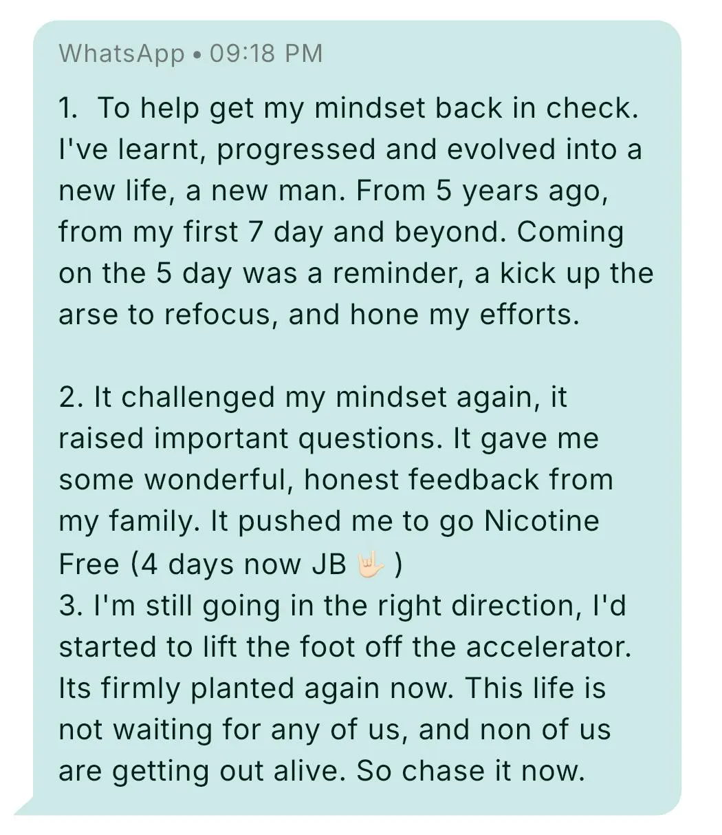 By the end of the 5 days, you will not just feel better, you will be moving forwards with clearer actions, direction & identity.