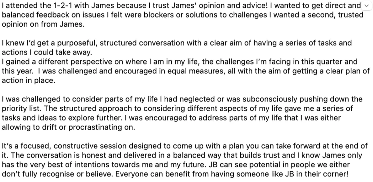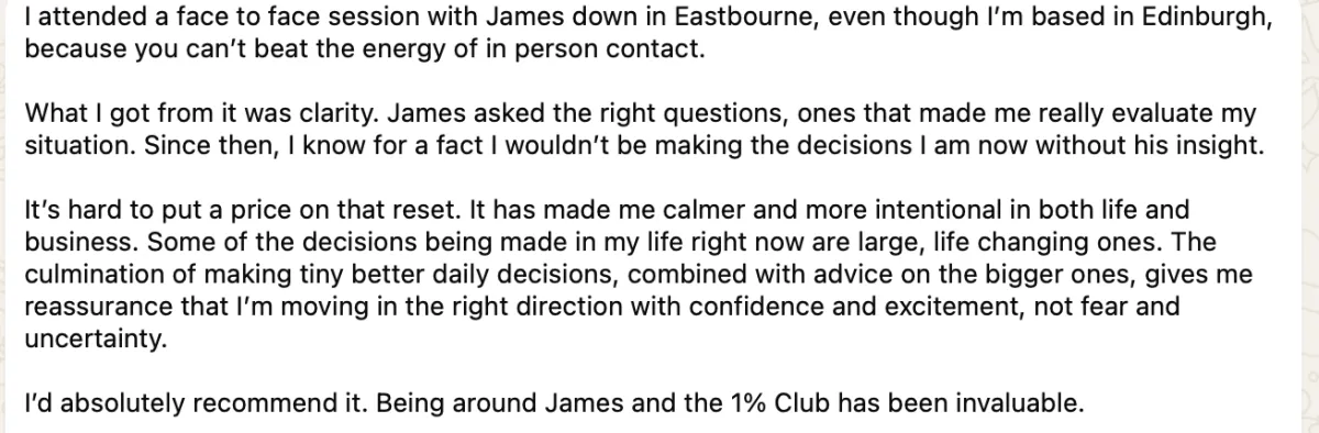 "Being around James and the 1% Club has been invaluable"